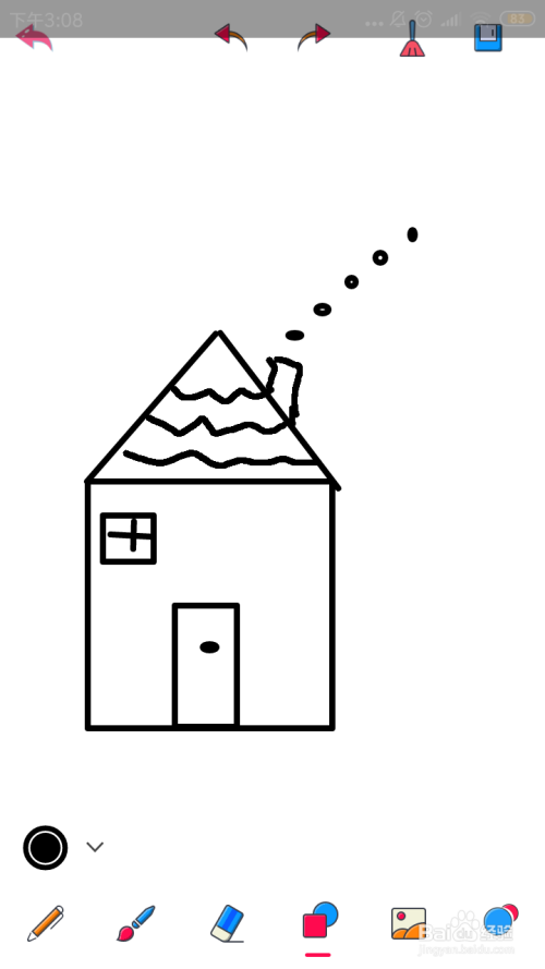 最后在烟冲上方画几个圆圈,这是烟,这家人正在煮饭了!完成。
