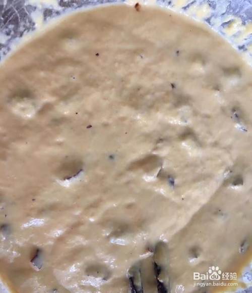 南瓜牛奶浆融入枣丁、鸡蛋、面粉搅拌均匀,放酵母粉再次搅拌均匀成糊状,发酵15分钟。