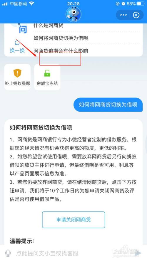 第四步就会自动回复你一个申请关闭网商贷,想好了要关闭的话就点击它,如图所示:
