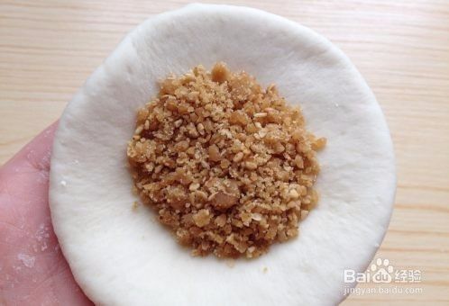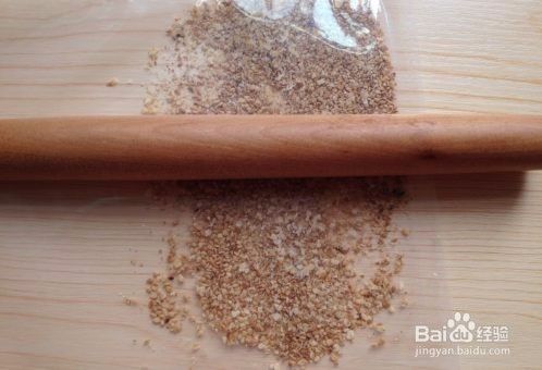 馅料的做法:将炒熟的白芝麻放食品袋里擀碎(不用太碎)