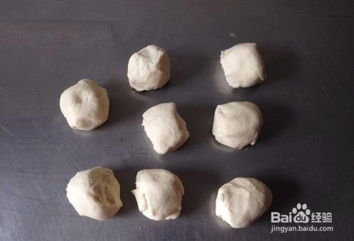 面团饧好后揉几下排气,再分成8份,每份约40g