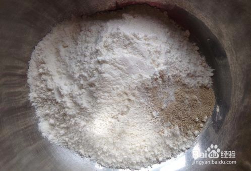 制作面皮:200g面粉里放入糖和酵母混合均匀