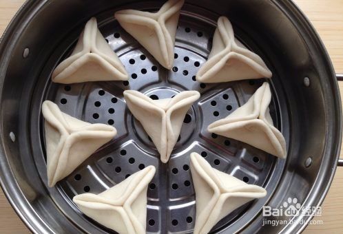 锅中倒入冷水,笼屉刷油,把包好的糖三角生坯放进锅中(之间要有间隙),盖上锅盖,再次饧15分钟左右(冬天大概需要30分钟)