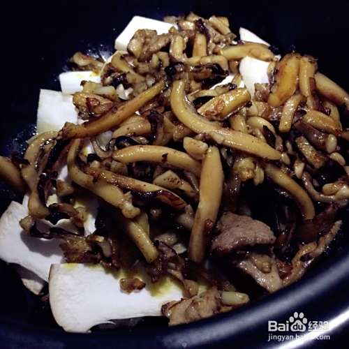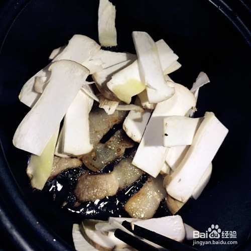 砂锅里铺上杏鲍菇