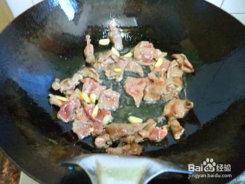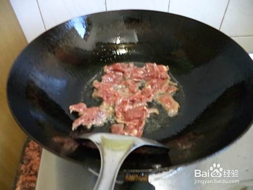 锅烧热,放油,牛肉入锅。