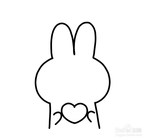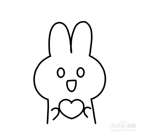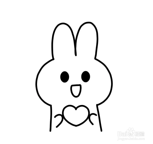总结:先用马克笔画出小兔子的耳朵;用马克笔画出小兔子的脸型;用马克笔画出小兔子的身体;用马克笔在小兔子身体区域空白处画一颗心;用马克笔画出小兔子的手;用马克笔画出小兔子的眼睛和嘴巴;用黑色蜡笔把小兔子的眼睛上颜色;用红色蜡笔把心涂满,用粉色蜡笔在小兔子耳朵和脸蛋处涂一点。