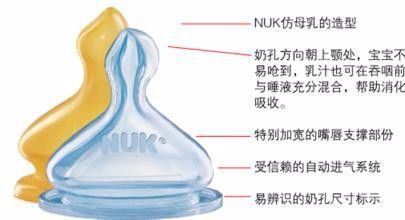 选择奶嘴时,要注意监测奶嘴孔的大小。奶嘴孔过大,每次的吸吮量会过多;奶嘴孔过小,宝宝在吃饱之前就会筋疲力尽。奶嘴的材料一般用硅树脂和天然橡胶制作。硅树脂奶嘴具有抗高温的特点,不容易变形;天然橡胶奶嘴容易吸吮,但是怕热,容易变形。