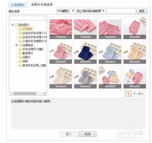 上传宝贝描述,点击图片空间图标(见下图),在下面找到你刚刚上传到图片空间的图片,一个一个选中,再点击插入、完成