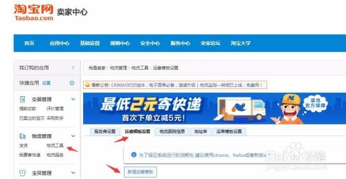在卖家中心左侧快捷应用栏---物流工具---选择运费模板设置---新增运费模板