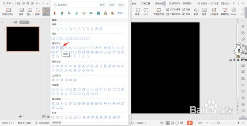 插入选项卡中点击形状,选择其中的矩形,在页面上绘制出矩形。