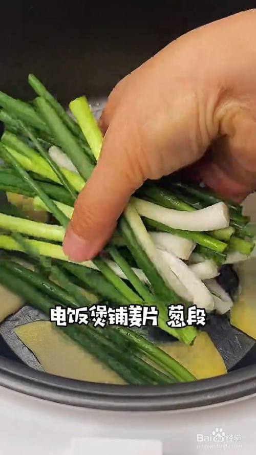 电饭锅中放入姜片 葱段;