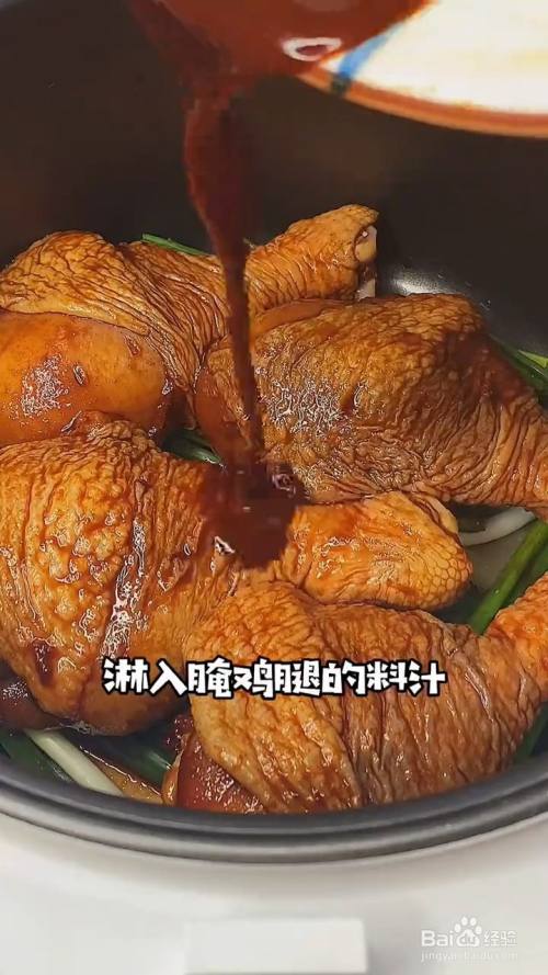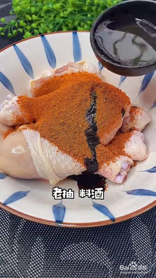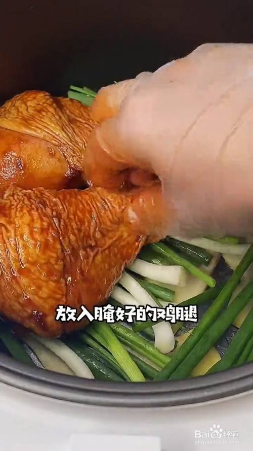 再放入鸡腿 倒上腌料汁;