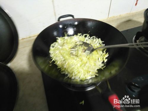 放炒好的肉丝(炒肉丝有一个单独的菜谱)一起炒30秒。