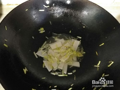 韭黄盛出后加点水,放入年糕片一起烧,直到年糕烧软,(不放年糕这一步省略)