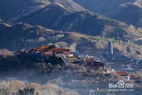 黛螺顶,爬上黛螺顶就可以很清楚的看到台怀镇了,也可以从此处看到远处的雪山,所以风景独揽一处。