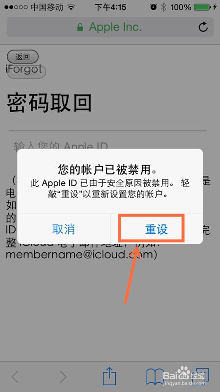 如果Apple ID 提示禁用后,就选择重设,如下图