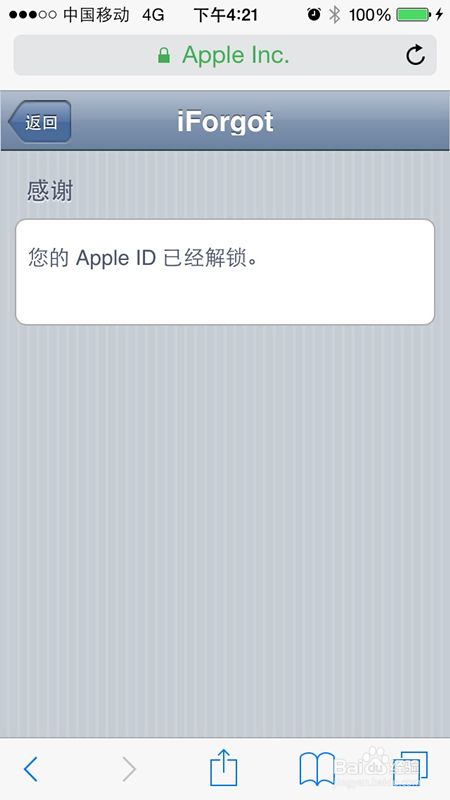 登录成功就会提示你的Apple ID已经解锁了,如下图