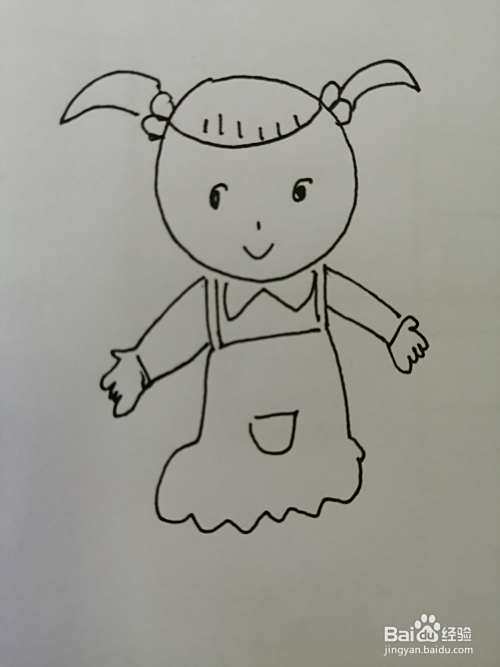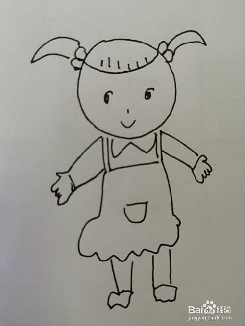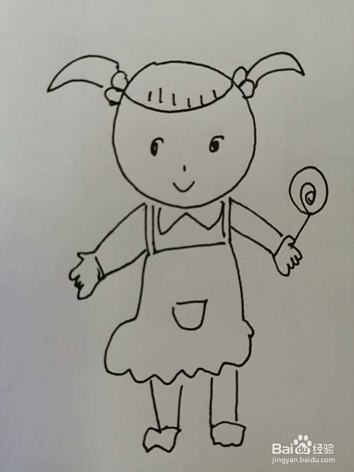 第七步,最后把活泼的小女孩手上的棒棒糖画出来。活泼的小女孩就画好了。