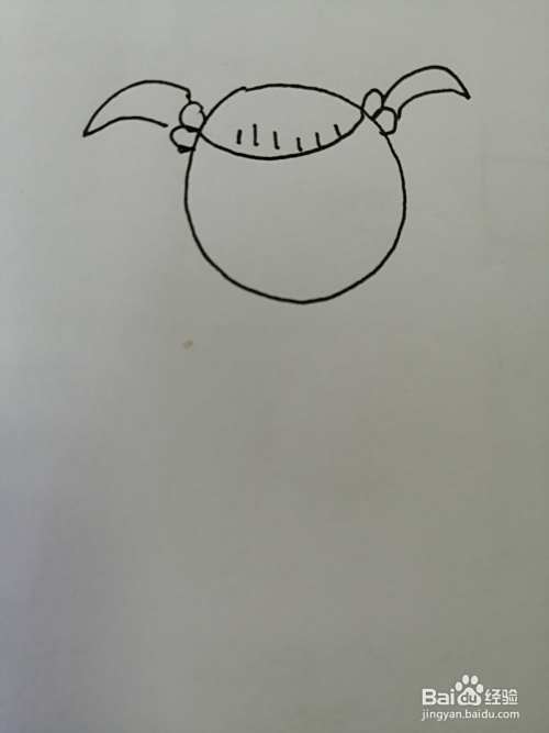 第二步,接着继续画出活泼的小女孩的头发,注意小女孩两边小辫子的画法。