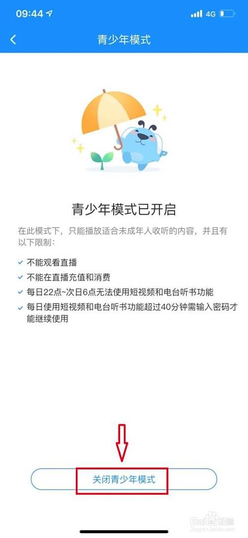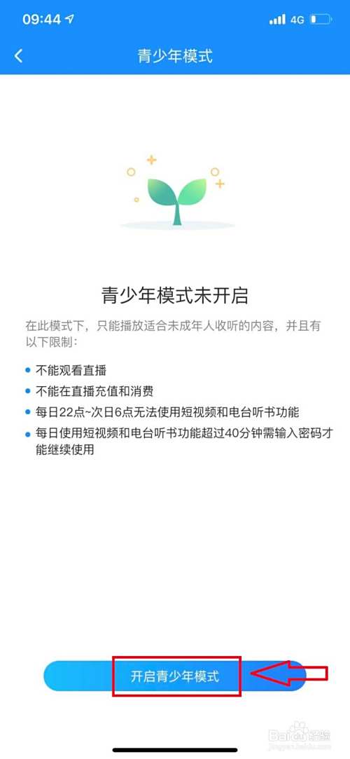 进入到青少年模式后,阅读好关于该模式的说明。然后点击开启青少年模式。