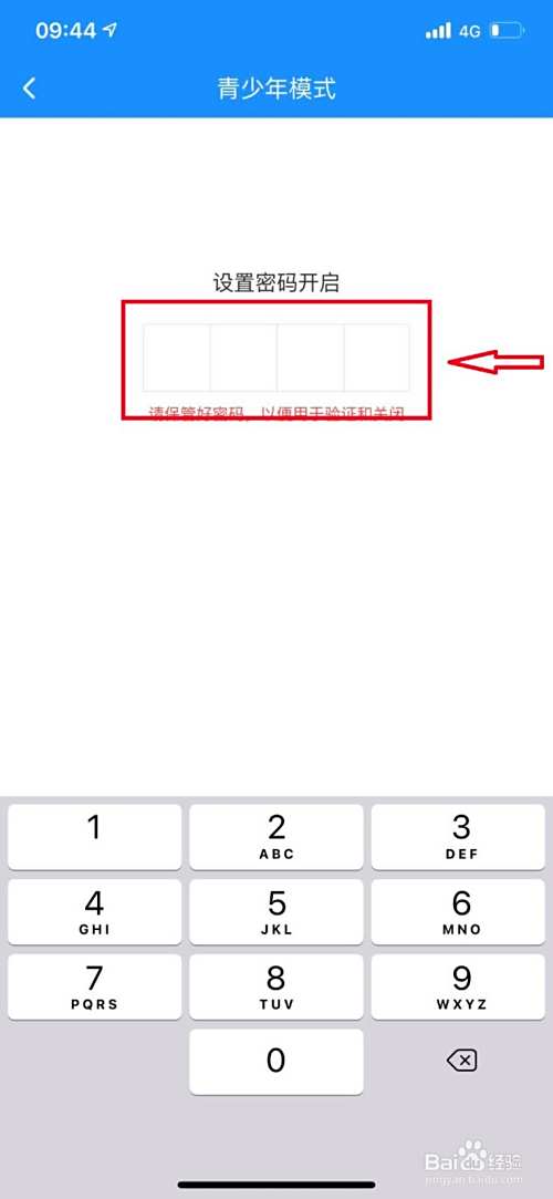 如图,在此页面需要输入青少年模式的解锁密码。根据自己的需要设置。