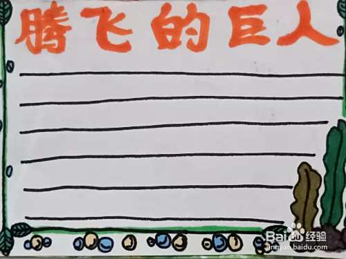5. 接着,在手抄报上面的位置写出大标题“腾飞的巨人”。