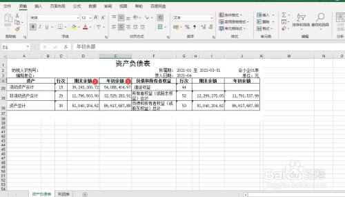 总资产的数据在财务报表的资产负债表,我们打开一张资产负债表。