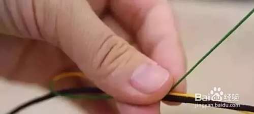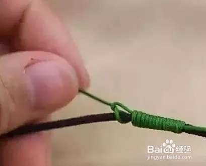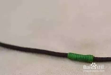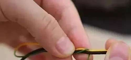 达成需要的长度后,将绿色的线头放到细线形成的圈里。