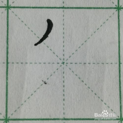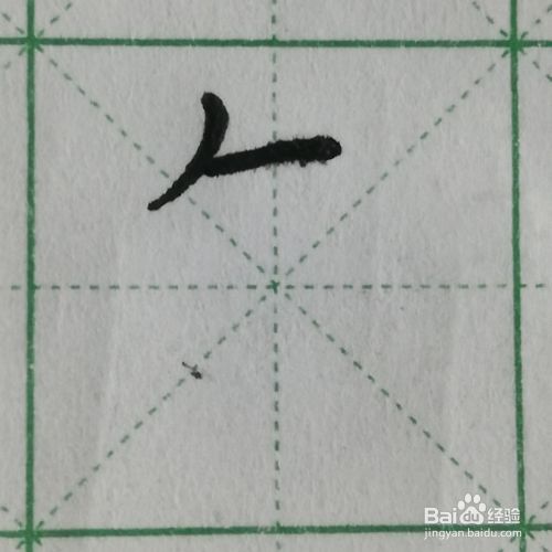 第一笔先写短撇,短撇在书写的过程中逐渐变细,注意角度。