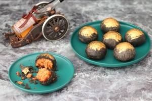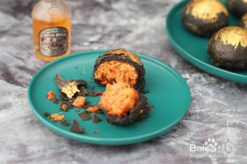 烤好晾凉,食用金粉+朗姆酒搅拌均匀,刷在上面做装饰。