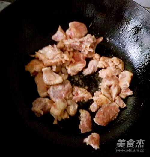 5热锅加入适量食用油,盐腌制好的排骨入锅,排骨煎至两面金黄,加入调制好的番茄汁翻炒(适量的番茄酱、蜂蜜、水,酸甜度按个人口味调制)