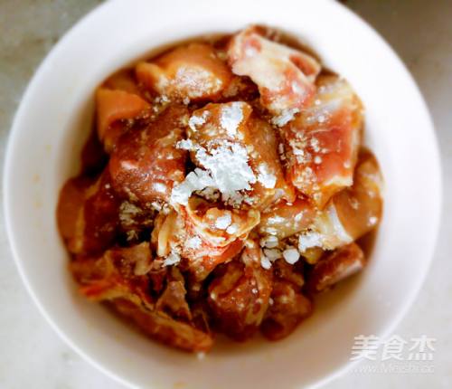 4加入适量的酱油、少量盐、少许的生粉,搅拌均匀,腌制二十分钟左右
