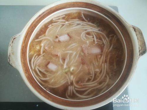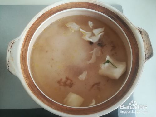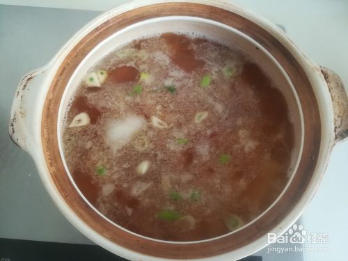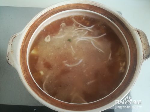 取一砂锅,坐火上,加入适量清水,放入2大勺高汤。