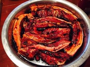 将肉放入容器内腌制2-3天,倒入白酒,期间时不时翻面以便肉的各个部分都能浸入酱油