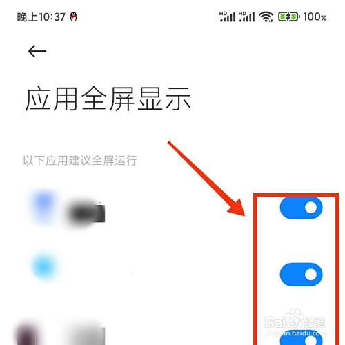 把你想要关闭全屏显示的APP勾选关闭即可。