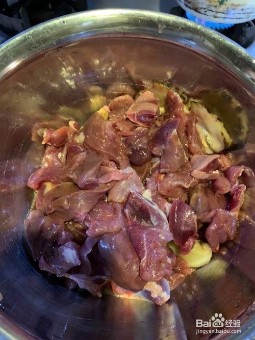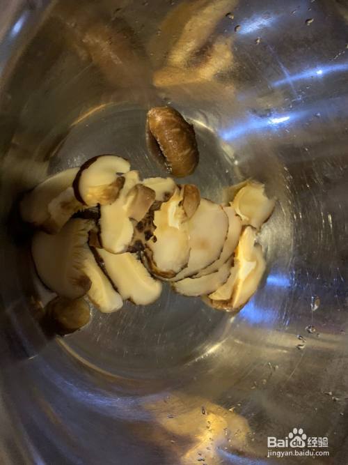 鸭肉切片和香菇一起加油、盐、生抽、姜片腌制2小时以上