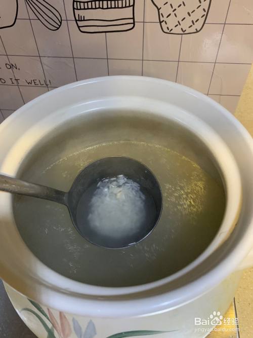 把米倒进去,大火煮,刚开始要用勺搅拌,会粘底
