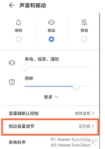 打开手机设置,点击声音和振动,选择侧边音量调节,选择操作的位置调节即可。