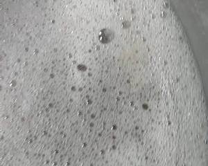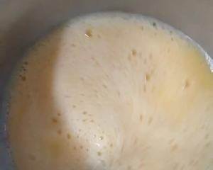 面粉筛过筛,勺子撇掉泡沫,盖保鲜膜,