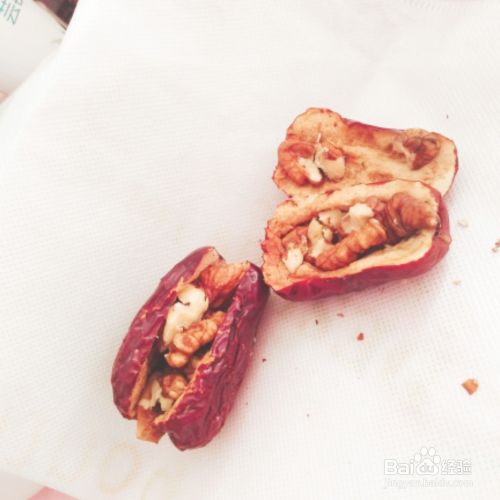 第六步:将核桃肉夹进红枣里面就完成了,可以直接吃,如下图所示。