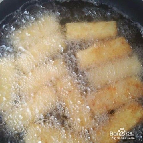 锅中烧油,七成热时以次下入豆腐炸,中炸至表面金黄酥脆,然后捞出控油。