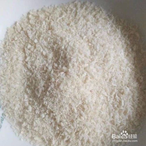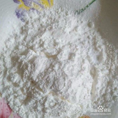把一个鸡蛋打入碗里打成鸡蛋液,准备适量的淀粉和面包糠。
