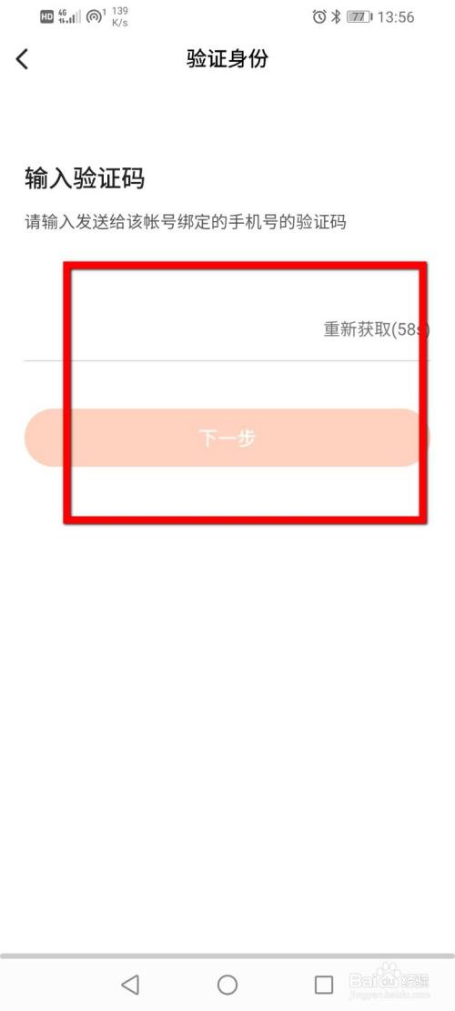 输入手机验证码,点击下一步。