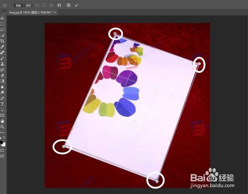 按住鼠标左键不放,拖出一个【透视框】,把透视框的四个点放到图片的四个角上