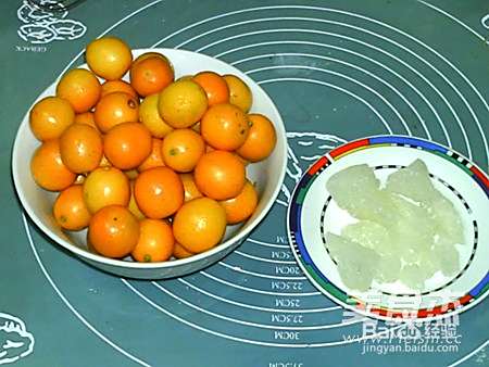 1用料:金桔700克,冰糖180克,水100毫升