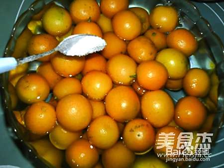 2将金桔放入清水中,加盐搓洗。