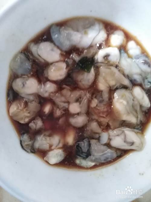 牡蛎洗净,用料酒、胡椒和酱油腌制