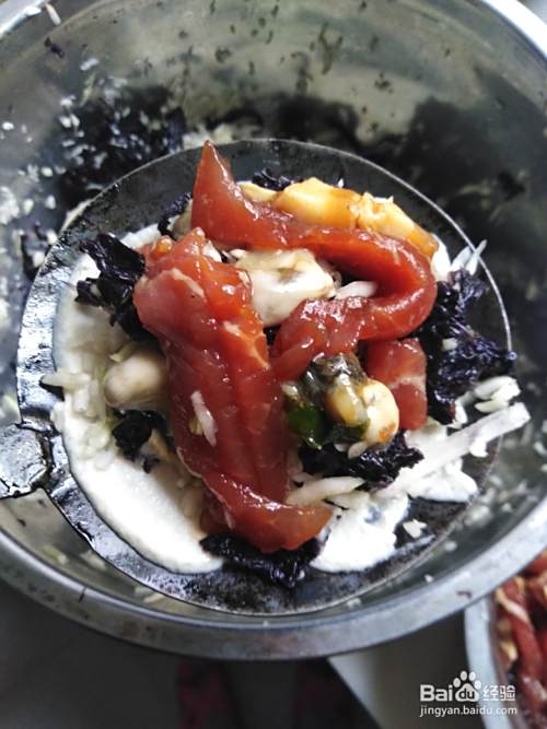 剩下的材料与面粉、水、鸡蛋和适当的盐混合