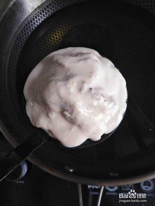 两小时后,把油放进锅里,再放两勺特制的炸牡蛎饼
