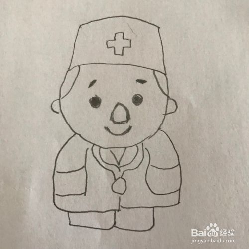 在脸的下方画出医生的白色大褂和戴在脖子上的听诊器,见下图